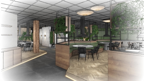 Het ontwerp heeft een industriële uitstraling met een authentiek tintje & robuuste elementen, grillen met elkaar in een stoere en maar sfeervolle omgeving.